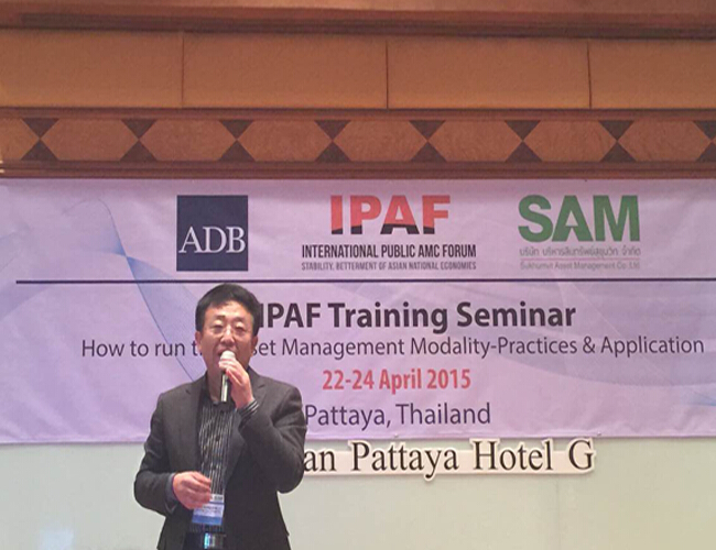 2015年4月22日-24日,浙江省浙商資產(chǎn)管理有限公司首席戰(zhàn)略官李傳全博士等3人應(yīng)邀參加了在泰國芭提雅舉行的第三屆IPAF(International Public AMC Forum,國際公共資產(chǎn)管理公司論壇)培訓(xùn)研討會,與亞太地區(qū)的十多家資產(chǎn)管理公司、專家學(xué)者等就不良資產(chǎn)收購處置等專題進(jìn)行面對面交流。