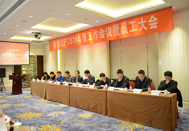2016年2月1日下午,浙商資產(chǎn)于杭州索菲特大酒店召開2016年度工作會(huì)議暨員工大會(huì),公司本級全體員工及部分子公司員工到會(huì)參加。
