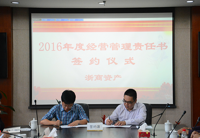2016年5月5日,浙商資產(chǎn)年度經(jīng)營管理責(zé)任書簽約儀式在公司322會議室召開。公司董事長藍(lán)翔、其他領(lǐng)導(dǎo)班子成員、各部門及業(yè)務(wù)團(tuán)隊主要負(fù)責(zé)人等40余人參加了會議,儀式由副總經(jīng)理徐曉東主持。