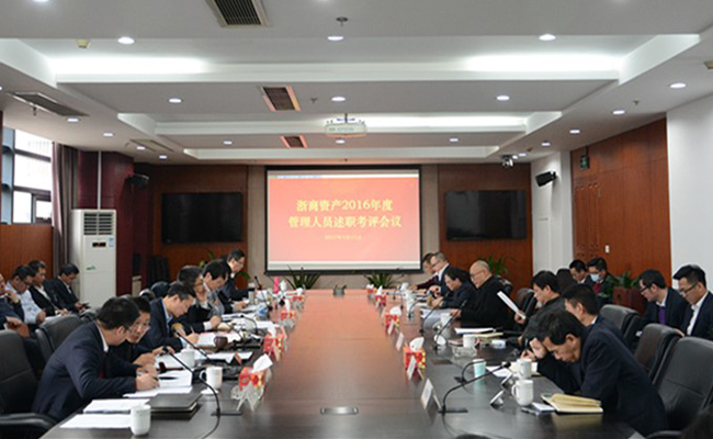 2017年1月11日,浙商資產(chǎn)管理有限公司在公司大會議室召開2016年度管理人員述職考評會議,公司本級中層管理人員及成員公司主要負責人近50多人參加了會議。會議由黨委書記鄭順民主持,公司領導班子成員參加了會議。