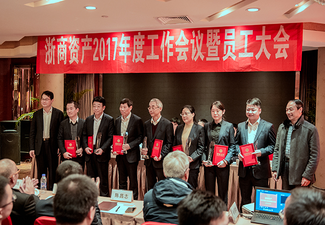 2016年1月19日上午,浙商資產(chǎn)于杭州友好飯店召開2017年度工作會議暨員工大會,會議由公司總經(jīng)理李偉達(dá)主持。省金融辦金融穩(wěn)定處許奇挺處長,財(cái)專辦毛海華副處長、王晗科長,公司本級全體員工及浙蕭資產(chǎn)、浙易資產(chǎn)、般若理財(cái)、金信資產(chǎn)、臺信資產(chǎn)等成員公司員工到會參加。
