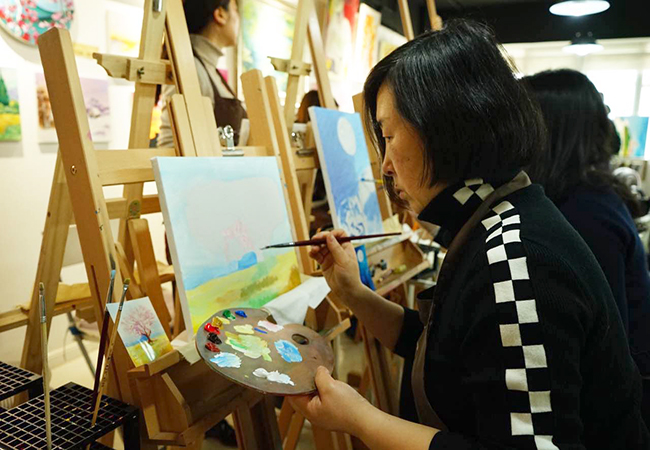 用圖畫(huà)裝飾生活,用畫(huà)筆記錄美好。盡管公司大部分女員工都并沒(méi)有太多的繪畫(huà)基礎(chǔ),在作畫(huà)的過(guò)程中,許多人都碰上了困難,或者調(diào)不出理想的顏色,或者拿捏不準(zhǔn)間架結(jié)構(gòu)。但通過(guò)畫(huà)室老師的指導(dǎo),以及同事之間的互相幫助,最終完成了一幅幅令人驚嘆的畫(huà)作。財(cái)務(wù)部周潔漪的星空?qǐng)D奇幻燦爛、運(yùn)營(yíng)部徐苒子的櫻花樹(shù)夢(mèng)幻美好、人力資源部總經(jīng)理錢(qián)煒的向日葵生機(jī)勃勃,每一個(gè)人都在自己的筆下創(chuàng)造了美好與奇跡。
